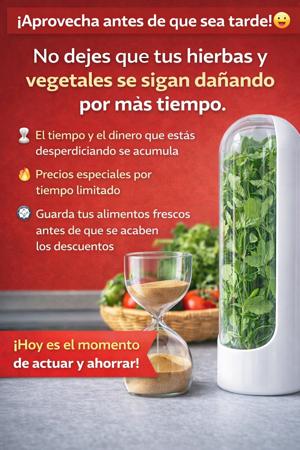 ¡No sigas perdiendo dinero cada semana! 😲⏳ Cada día que pasa, tus hierbas se dañan y terminas botando comida. 🔥 Promoción por tiempo limitado (puede acabarse en cualquier momento). 📦 Alta demanda: unidades disponibles reducidas. 👉 ¡Actúa hoy y empieza a ahorrar desde tu próxima compra! ¡Entre más esperas, más dinero desperdicias!